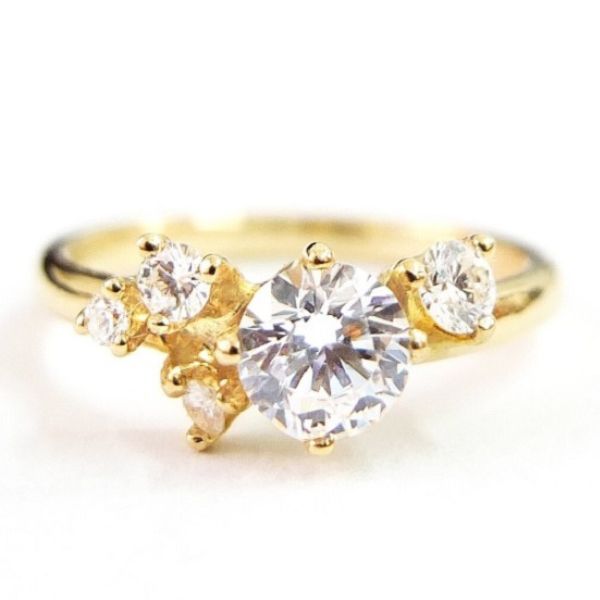 Cluster rings remain a popular choice for those seeking contemporary designs. The beauty of these rings is their versatility. As they are not restricted by size, order or other factors, there is a lot of room to get creative. These rings typically have an asymmetrical design, with a centre diamond that is flanked on either side by additional smaller stones of various sizes.