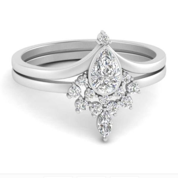 Tiara rings are a good option if you are going for stacked engagement and wedding ring sets. They are also gorgeous on their own, with a design that resembles a tiara. The centre stone is capped by a crown of stones, with a larger stone at the pointed tip. Keep the tiara with all diamonds or add other stones within the upper part for more visual detail.