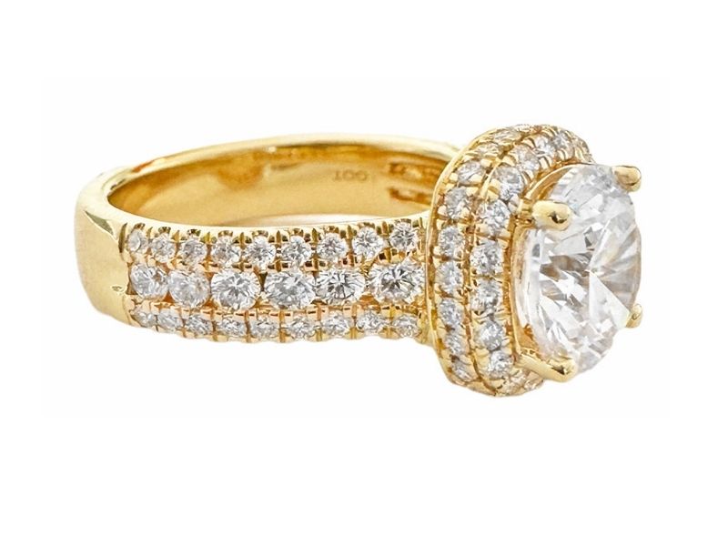 From subtle to statement, multi-row engagement rings are elegant and versatile. As the name suggests, these rings feature multiple rows in their designs. Unlike split bands, which typically have a single band that splits at the centre on either side of the stone, these rings feature anything from three to five rows. In many designs, pavé and smaller diamonds are used. Other designs have round diamonds or clustered stones.