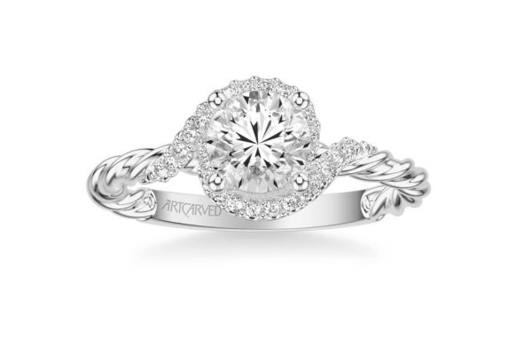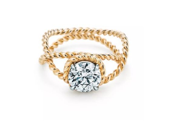 Twisted bands remain a timeless choice in many designs. The combination of pave twists and a rope band makes this ring highlight the centre stone in a way that is not overpowering. The result is a beautiful ring with plenty of swirls. It would work well in any metal, whether you prefer cool or warm tones.