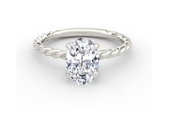Oval diamonds are a classic choice that never goes out of style. They are flattering on everyone, with a minimal look that works well in just about every design. With a rope band, the focus can stay on the centre stone, adding a little more visual detail. This ring would be perfect in any metal. The balance of white gold and diamond keeps it extra subtle.