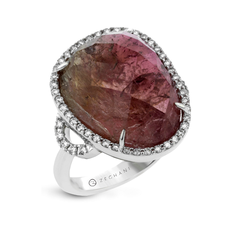 This stone gets its name from its watermelon-like colour range. The inner part of the stone is a deep pink, spreading out to a delicate pale colour and deepening into a dark shade of green. Dramatic in any type of metal, the addition of tiny halo stones add even more beauty to this unusual ring.