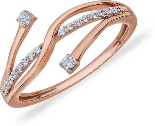 With its intricately twisted band that features tiny pave stones and two tiny diamonds on each end, this vine-inspired ring works especially well in rose gold. This ring would appeal to romantics and feminine brides-to-be who favour pretty, delicate designs. It would also work well in yellow gold, and the stones can be changed to just about anything from black diamonds to morganite.