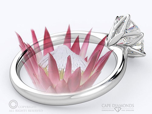Finally, from our very own Fynbos Collection, we have the exquisite King’s Queen Solitaire White Gold or Platinum Fynbos Flower Diamond Engagement Ring. This ring takes its name and inspiration from one of South Africa’s most recognised fynbos flowers, with a beautiful design that brings to mind wide open spaces, natural splendour and clear blue skies.