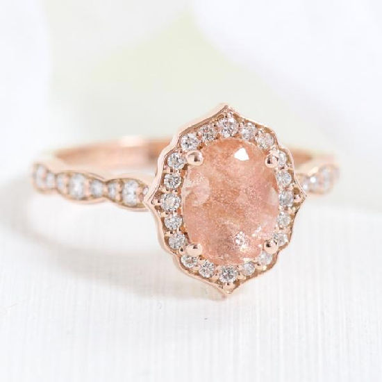 Some of the loveliest sunstone engagement rings we’ve seen include the following: