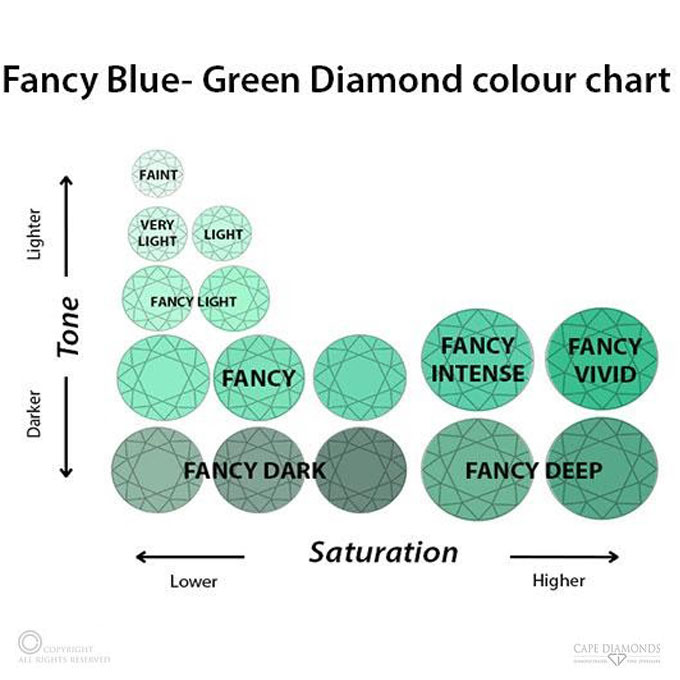 The tone of a blue diamond refers to its lightness or darkness, impacting its perceived intensity. GIA grading doesn’t distinguish tones, but darker-toned diamonds can appear more vivid. Blue diamonds typically do not fluoresce.