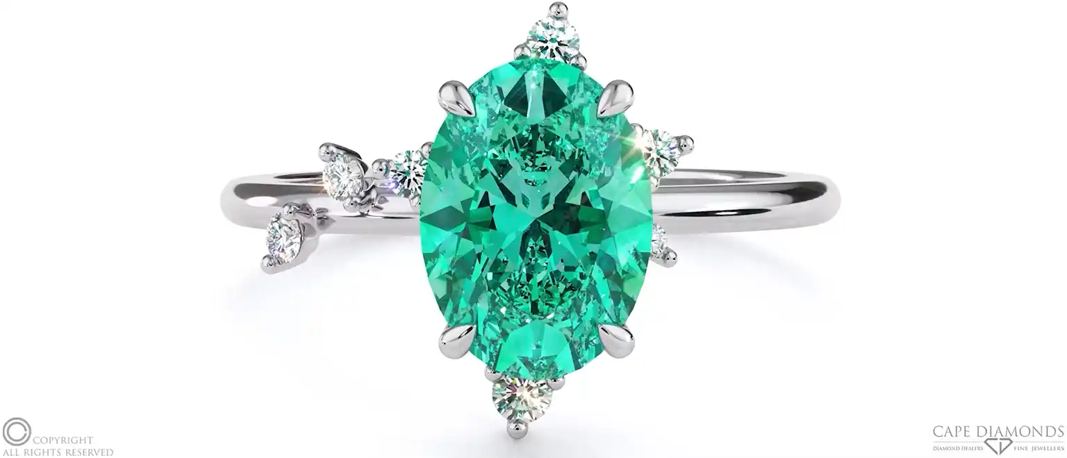 Cape Diamonds’ green emerald engagement ring builder allows you to create your dream ring with ease. Choose from a selection of exquisite emerald gemstones, ranging in hues from deep green to vibrant teal, and customise your ring with your preferred gemstone characteristics, settings design, and precious metal choice. Our local workshop, found in the heart of Cape Town, South Africa, will handcraft your custom green emerald engagement ring to perfection, ensuring a proposal as unique as your love story!