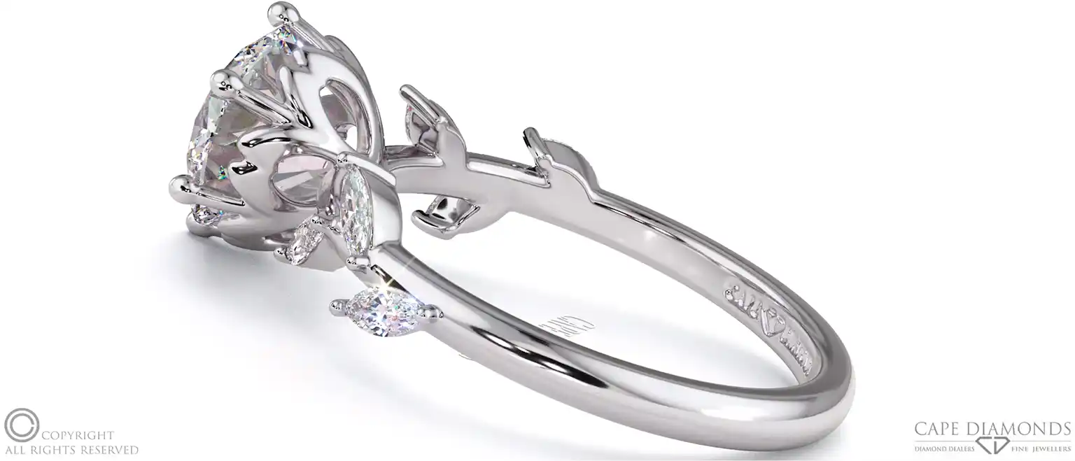 Any diamond ring buyer should think about the ring’s aesthetics vs. its durability. It’s not a good idea to choose a beautiful ring design that won’t last. Cape Diamonds will always advise you on what works best regarding the outcome you desire. A diamond may look very beautiful in a revealing setting, but if there’s a high risk of a diamond falling out, we will advise you on how best to go about it without risking the longevity of the diamond.