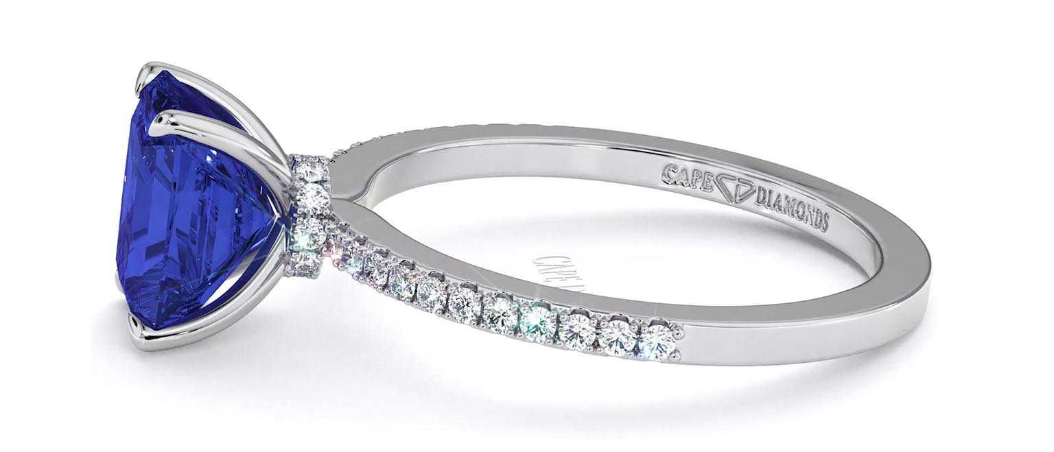 Start with a hidden halo setting for a secret sparkle then choose a natural tanzanite. Custom build your ring in Cape Town, South Africa.