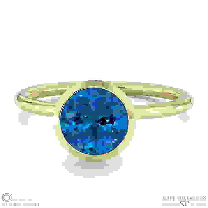 Sapphire Round Cut Basket Bezel Solitaire Yellow Gold Engagement Ring