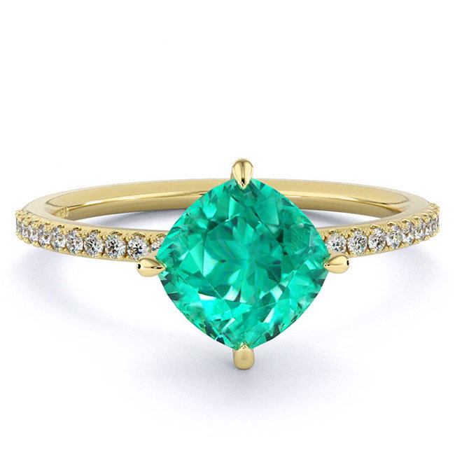 Yellow Gold Side Stone Green Garnet Engagement Rings