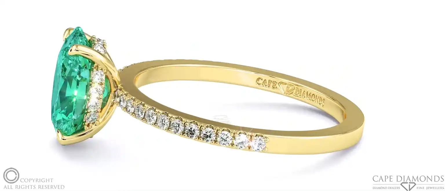 Our stunning Fynbos Collection is what makes us unique as a jewel company. We love to be inspired by Cape Town’s nature, and have made ring settings perfectly resembling many different flowers including the Blushing Bride, Pincushion, Darling Daisy and Strelitzia. With the vibrant Green Garnet together with the yellow gold metal, it radiates warmth, passion and sophistication.