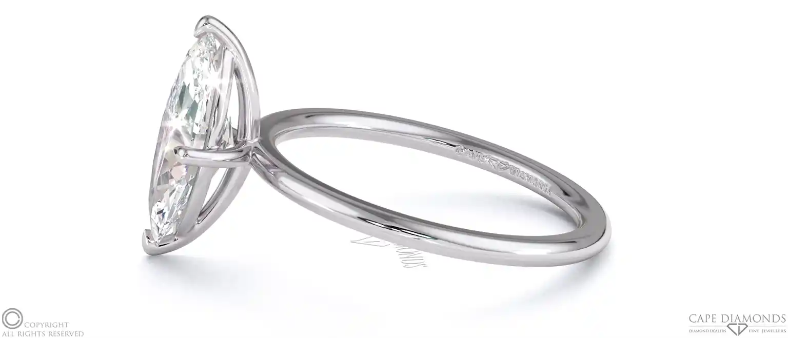 At Cape Diamonds, we believe there is no better way to express your love than with diamonds. Diamonds are forever, and can be passed down from generation to generation, making your 2.0 carat marquise diamond a regal and elegant investment to be cherished for a lifetime. Ensure an optimal colour and clarity grade pairing with expert advice from our sales consultants.