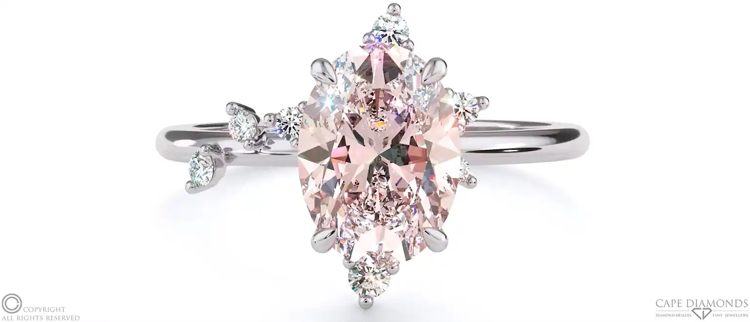 Step into a realm of natural beauty with our Floral Fynbos inspired engagement rings featuring exquisite morganite center stones. The delicate pastel hues of morganite, reminiscent of blossoms in spring, serve as the heart of these captivating rings. Drawing inspiration from the indigenous flora of South Africa, each ring beautifully embodies the gentle elegance and charm of the Fynbos landscape, reflecting its captivating allure. These rings, with their morganite centerpieces, capture the essence of romance and grace, making them a perfect symbol of eternal love and natural beauty.