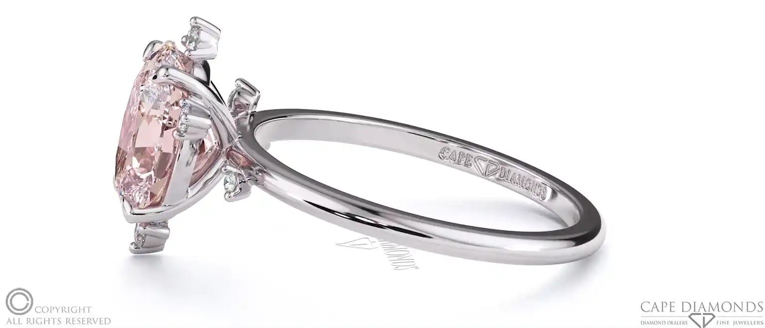 Experience the captivating allure of our Fynbos Floral collection. Available only at Cape Diamonds, this unique line is inspired by the intricate shapes of the Cape Floral Kingdom, showcasing its natural beauty and charm. compassion. Having a pink diamond in your engagement ring symbolizes eternal love and commitment.