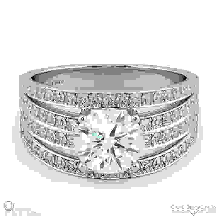 Multi Row Pave Setting Split Band Round Natural Diamond Engagement Ring Platinum