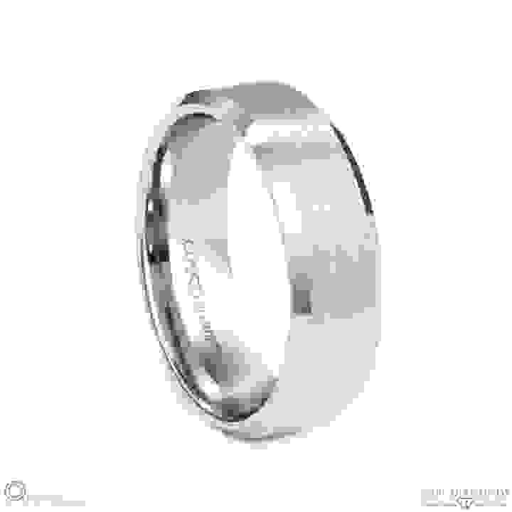 Introducing the best "Platinum or White Gold, Brushed Surface and Polished Bevelled Edged Comfort-Fit Men’s Wedding Rings" in South Africa, proudly brought to you by Cape Diamonds. A "bevelled" wedding band that combines satin and polished finishes makes this particular men’s wedding ring a world-class piece of desirable designer jewellery. This wedding band, designed by Cape Diamonds, characterizes an ultramodern polished 45-degree angle-cut edging. This edging implements along the entire circumference of the ring with a glossy finish that exudes a mirror-reflective shine, supplemented with an abstract sanded top-surface. Platinum and white gold are the noble metals that express a chivalrous, silvery shine that holds high-fashioned minimalism and defines ultimate sophistication. Platinum is the densest metal of them all and is least resistant to denting and scratching. Platinum does not lose its weight integrity and beautifully dignifies with age. White gold is less expensive and more universally serviceable, however, it does require regular plating and polishing to retain its essential composition. A softened and soothed surface finished with cushioned corners to create a most comfortable fitting for everyday wear is called a "comfort-fit."