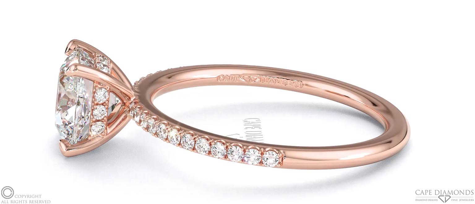 Start with a rose gold engagement ring setting then choose a natural cushion-cut diamond. Create your bespoke masterpiece in Cape Town, South Africa.