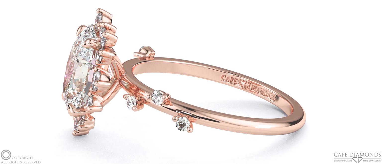 Start with an intricate rose gold setting then choose a natural diamond. Custom your detailed, filigree engagement ring in Cape Town, South Africa.
