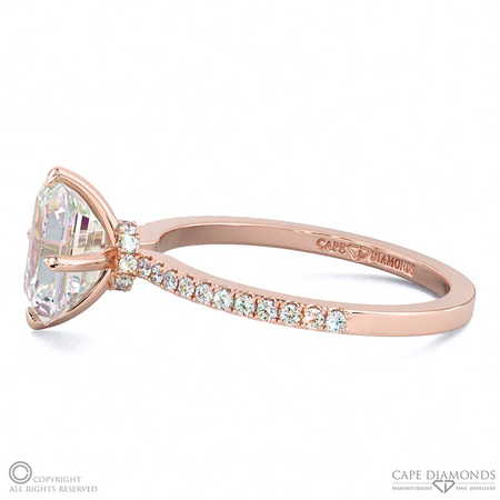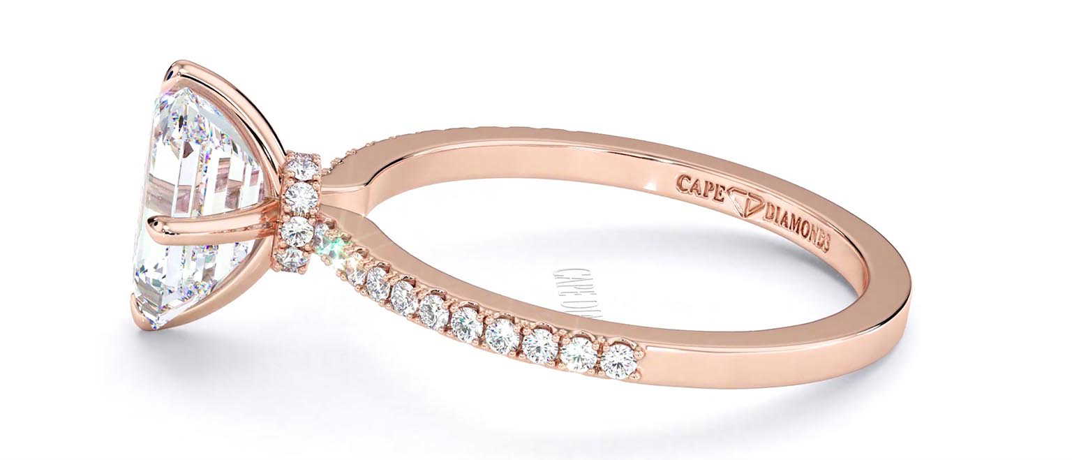 Start with a side-stone engagement ring setting then choose a natural diamond. Custom build your sparkling pave rose gold ring in Cape Town, South Africa.