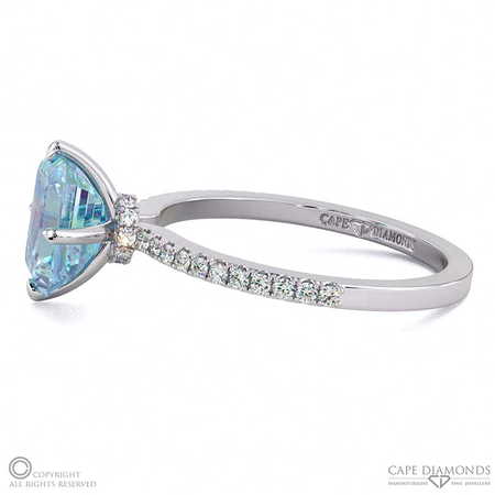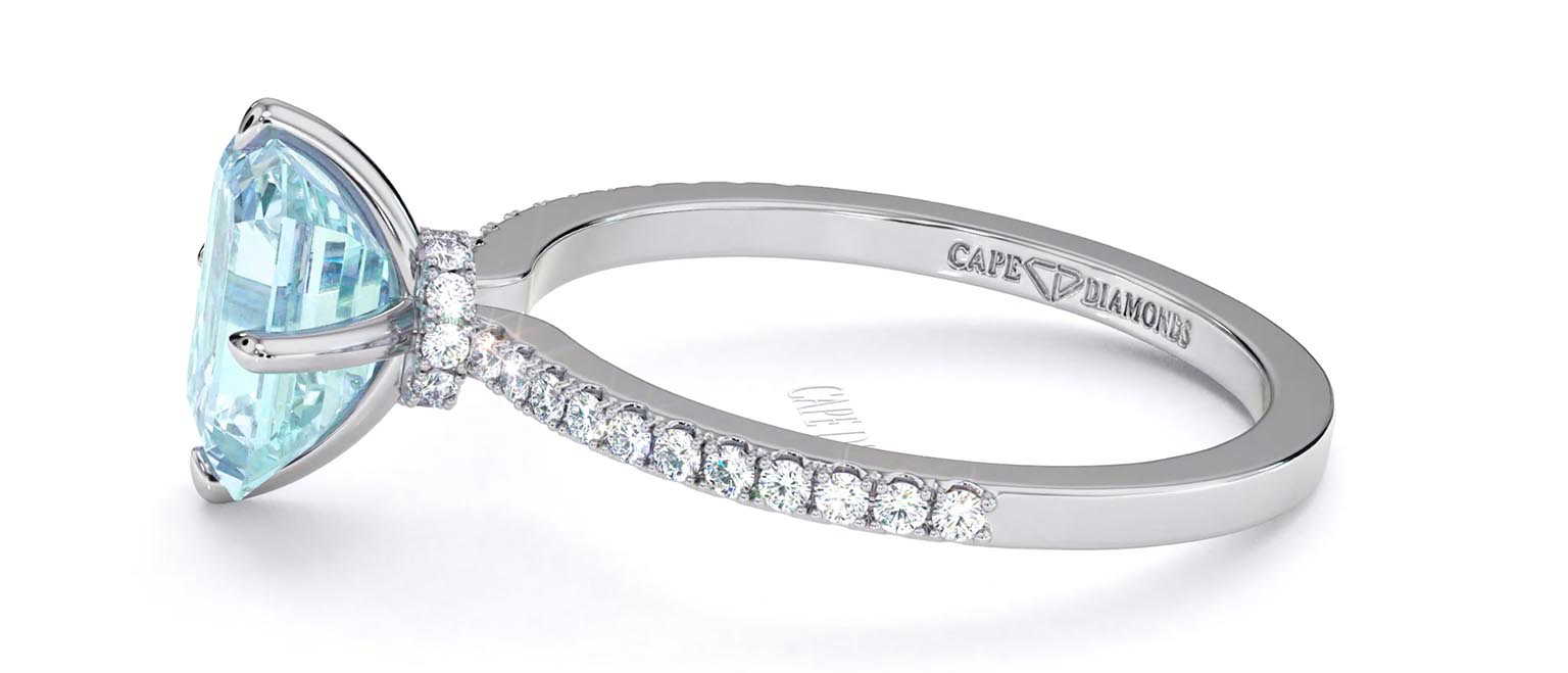 Start with a engagement ring setting then choose a natural blue emerald-cut diamond. Custom build your infinity mirror ring in Cape Town, South Africa.