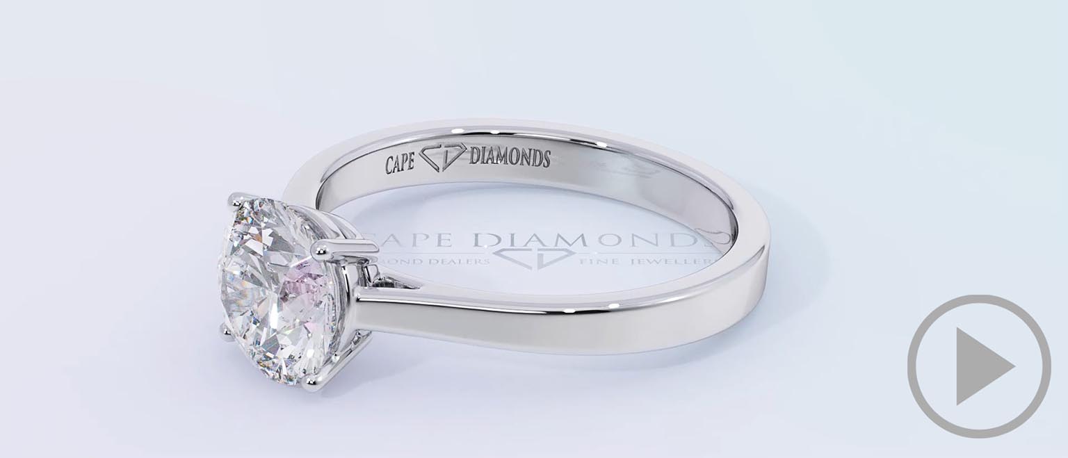 A lovely classic white gold and diamond design – this captivating piece of jewellery holds timeless style and scintillating diamonds worn by Durbanville women. A white gold band with squared edges lengthens into a double encircled four-prong mounti