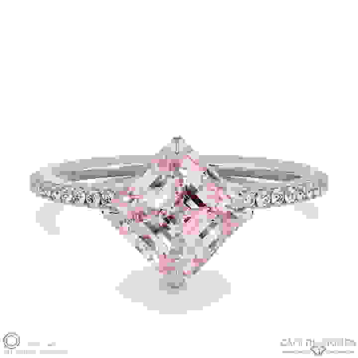 Pink Lab Diamond Asscher Cut East To West Setting Pave Engagement Ring White Gold