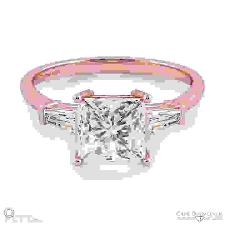 Baguette Princess Cut 3 Stone Natural Diamond Engagement Ring Rose Gold top video Video Play