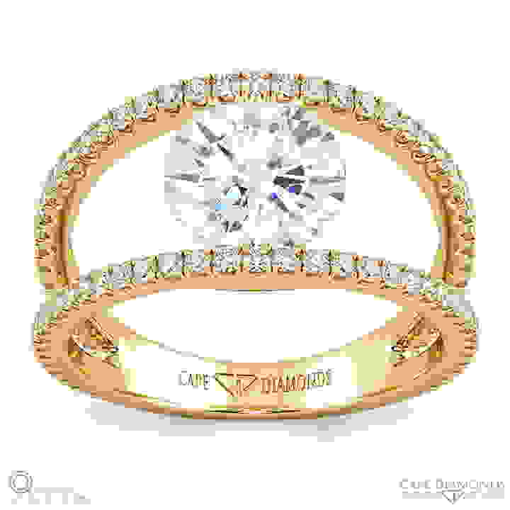 Contemporary Pavé Natural Diamond Split Band Engagement Ring Yellow Gold
