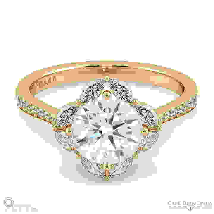 Halo Natural Diamond Engagement Ring Yellow Gold With 8 Marquise Small Natural Diamonds