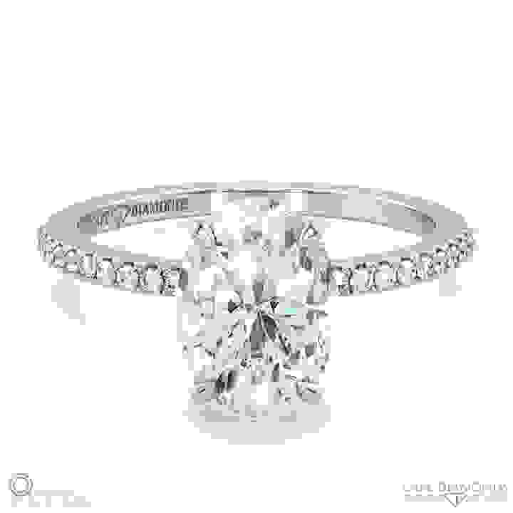 Oval Natural Diamond Chalice Engagement Ring Platinum With A Double Natural Diamond Halo And Petit Side Natural Diamonds