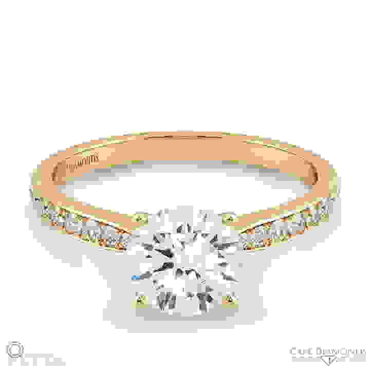 Round Solitaire Stone Pave 4-Claw Setting Natural Diamond Engagement Ring Yellow Gold