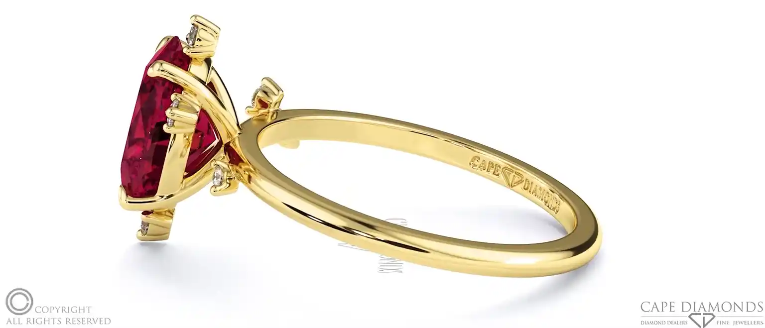 Our Yellow Gold Fynbos Collection features dazzling Spinel gemstones, and captures the breathtaking elegance of Cape Town’s fynbos flowers. Whether you’re looking for a romantic gesture or a timeless piece of South Africa to take home with you, Spinel Fynbos Floral Engagement Ring is the ultimate expression of your love and devotion.